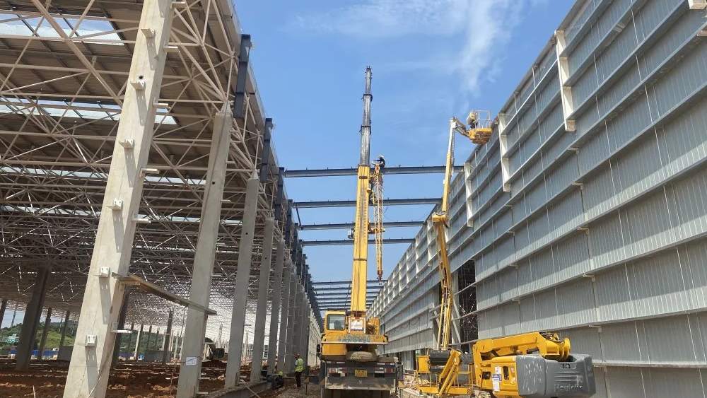 墻面外板使用TDC51D+Z220,PVDF鐵青灰、火石灰。 屋面使用BaoAM?高鋁鋅鋁鎂光板,牌號(hào)S350GD+AM180。