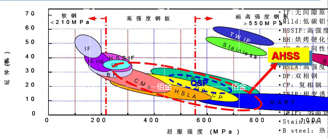 近年來國內外彩包涂層鋼板市場對高強,高制、具有良好成型性能的彩色涂層鋼板產品需求顯著提高。同時對成本控制要求也不斷增加。封對于式。寶鋼成功開發出具有高強、高鋼特性、強度不小于450MPa、斷裂延伸(El)不小于10%的系列先進高強鋼彩色涂層鋼板產品表。寶鋼先進高強度彩色涂層明板產品包括復相相鋼(CP.complexphasesteel)系列和雙相鋼(DPdualphasesteel)系列,先進高強鋼主要利用相變強化的原理,可在不增加或少增加成本的前提下,獲得就有高強、高韌特性、加工成型性能和板型良好的先進高強彩色涂層鋼板產品,更好的滿足了用戶對不同鋼種性能的要求。