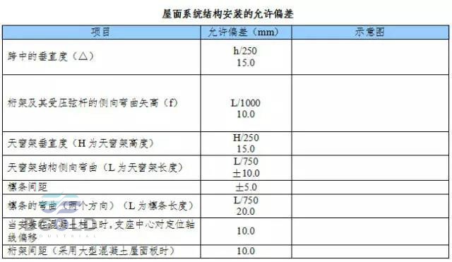屋面系統(tǒng)結構安裝的允許偏差應符合下表規(guī)定。