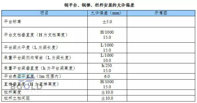 (4) 平臺、梯子和欄桿安裝的允許偏差應符合下表規(guī)定。