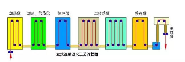 連續退火工藝呢,就有點像下面條了。帶鋼在退火機組的爐子里彎彎曲曲纏繞,跟著輥子運轉前進,是把帶鋼展開加熱的。機組的速度控制好了,從帶鋼進爐子到出爐子的時間也就固定下來了,速度和爐溫決定了火候。